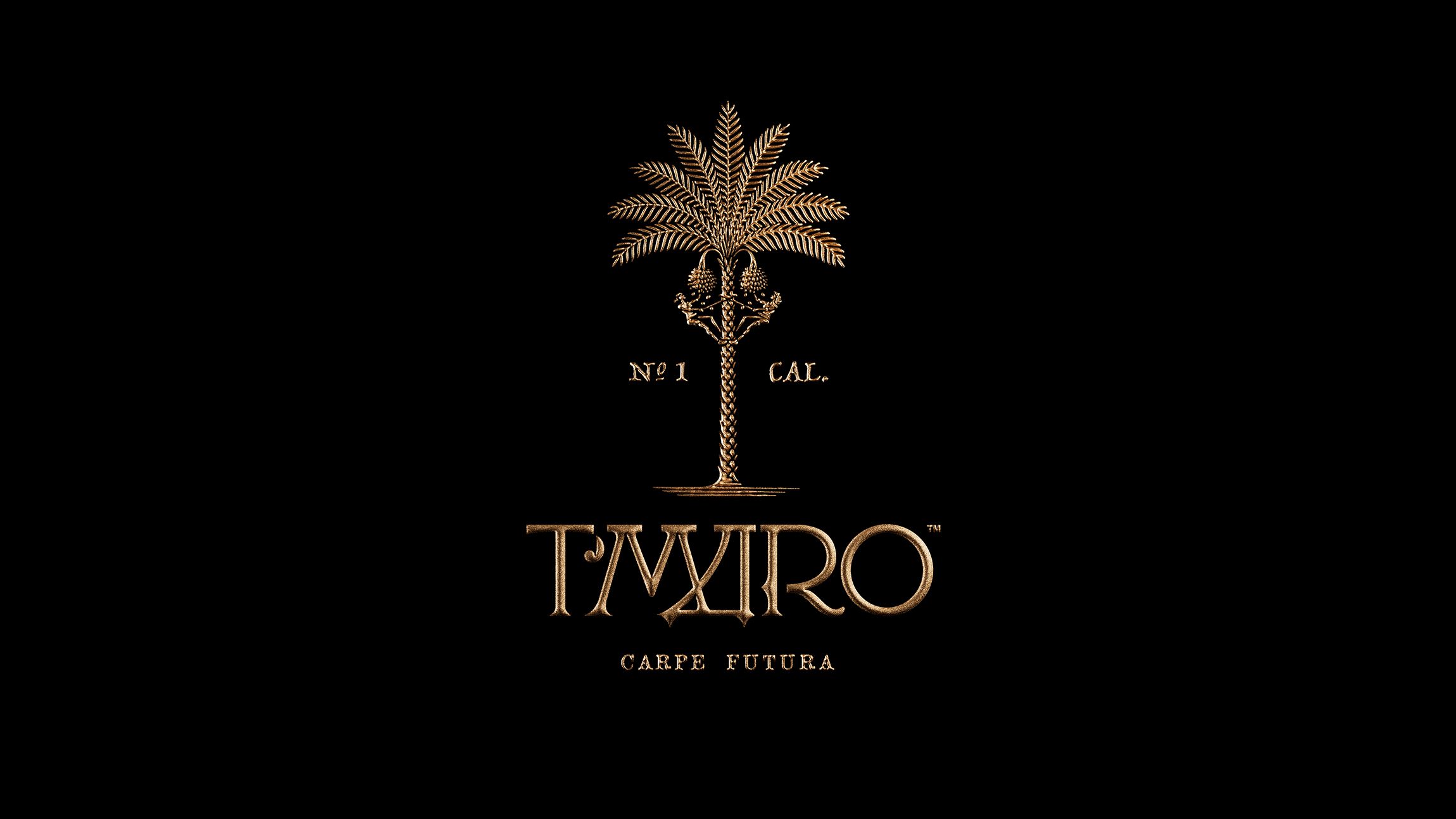 Dates are an exalted treat, wrinkled with mythology and the wisdom of the Phoenix dactylifera—a tree that lives up to its name, rising through the heat to bear the fruit of the future. Naturally abundant and sustainable, California dates are the star ingredient for T’maro, an innovative line of spirits. The name, T’maro, pronounced like tomorrow, means that we may be inspired by our pasts, but we are decidedly part of what comes next. The name acts like a code to our voice, which we’re calling ‘Lingua Futura.’ It's not English or Latin or some other long-dead language, but a blend of our own innovation. The brand is meant to be a timeless reinterpretation of what's old and new—of ancient wisdom and modern ideals. Borrowing from Greek and Roman characters, our wordmark is crafted by hand and carefully composed with both balance and inspiration, at once carved in stone and set free to sway in the wind.